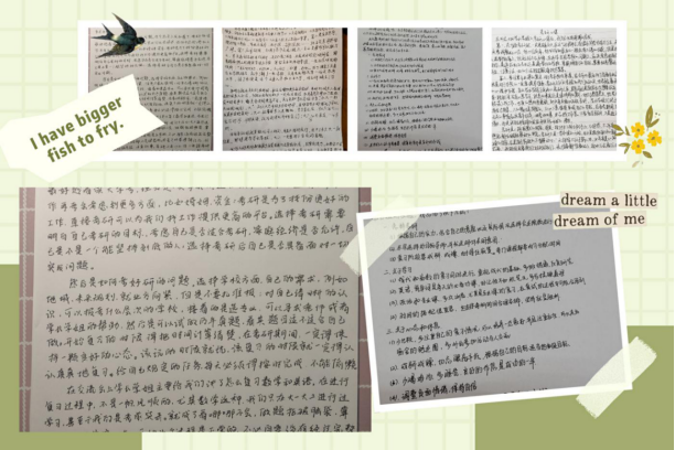 此次线上交流会充分利用网络平台,不仅给大一同学们提供了宝贵的学业规划意见,还给立志考研的同学们指引了方向,帮助同学们对考研有更具体、更清晰的认识,为以后考研成功打下坚实的基础。交流会结束后,同学们受益匪浅。在交流会结束后,团支部安排19级每位同学手写交流会心得,制定科学的大学四年学业规划。