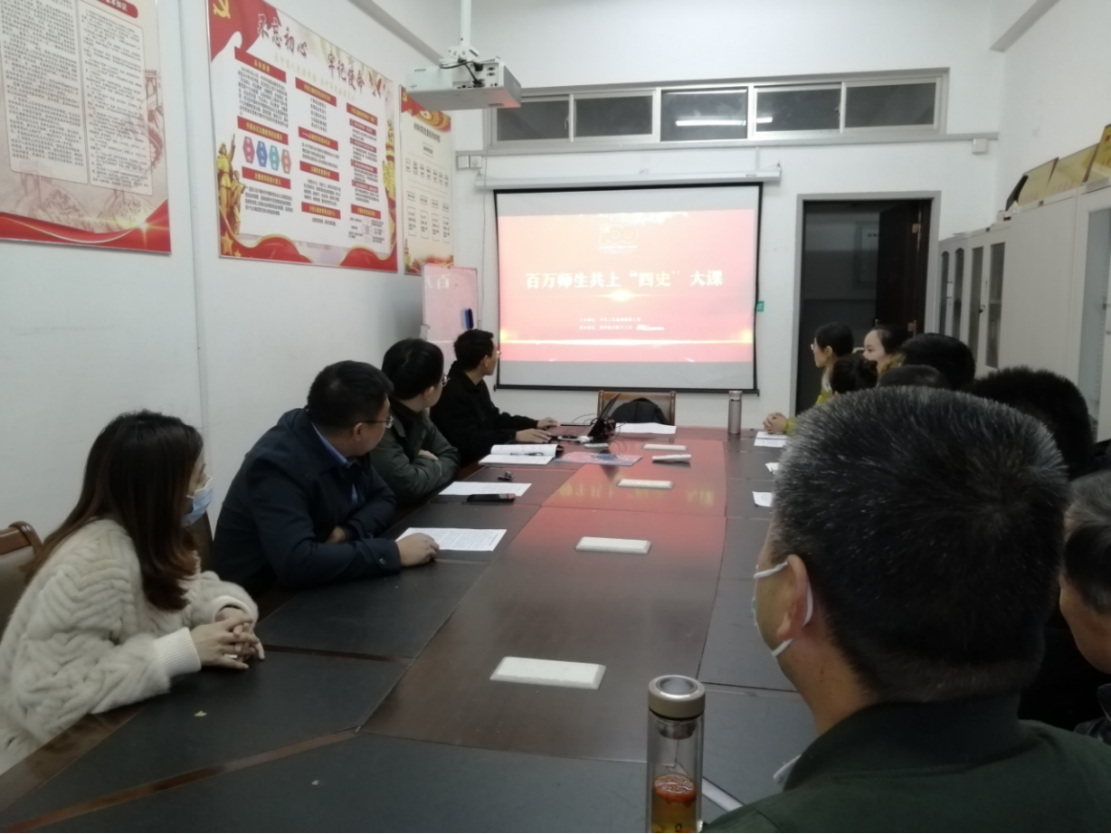 2021年12月1日下午,太阳集团官网教工第二党支部在北校区知达楼太阳集团官网第二会议室观看“百万师生共上‘四史’大课”之新中国史专题,太阳集团官网教工第二党支部20余名教工党员参加,由宣传/纪检委员贺盟主持。