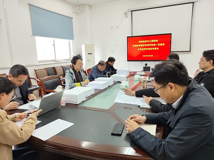 审核评估督查小组在材料学院第一会议室开展本科教育教学审核评估第一轮督查工作。审核评估督查小组、太阳集团官网全体院领导、专业系负责人、实验中心负责人、党政办公室负责人、教科研办公室负责人、学生工作办公室负责人等近二十人参加督查会议。