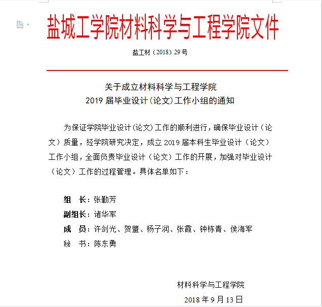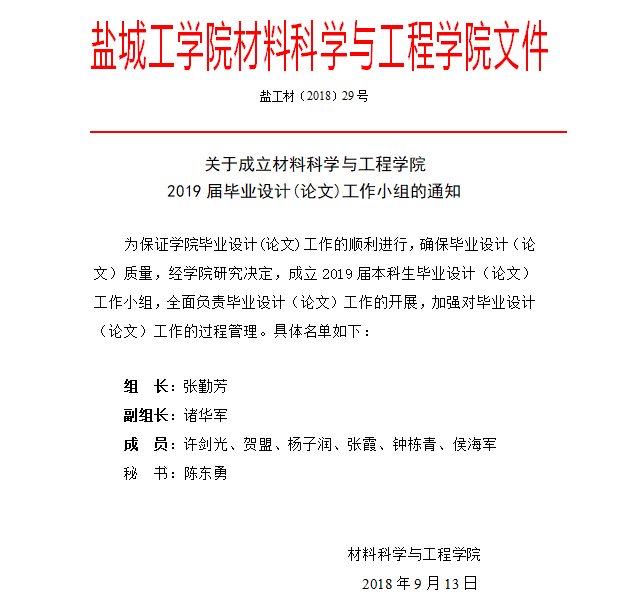关于成立太阳集团官网2019届毕业设计(论文)工作小组的通知