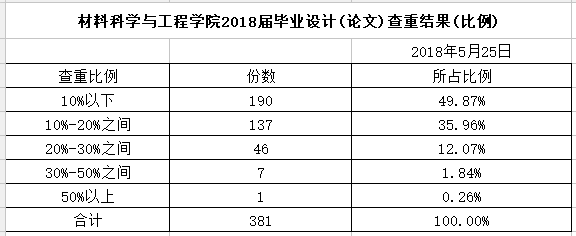 太阳集团官网学院2018届毕业设计(论文)查重结果