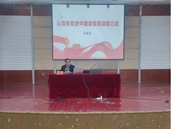 徐报喜以“从百年党史中激发信仰汲取力量”为主题,围绕党史教育,建党精神等重点内容,详尽讲述了百年大党的艰辛与辉煌,深入分析了新时代下的机遇与挑战。通过丰富的史实、生动的语言讲述了一个个感人至深的历史瞬间,带领全体新生重温初心使命,感悟建党精神。同时,徐报喜代表校关工委对同学们提出了殷切期望,当代大学生要以党史学习为契机,早日树立目标,以勤学浇筑梦想,用奋斗创造幸福,努力成为新时代有担当的继承者、开拓者和奋斗者。