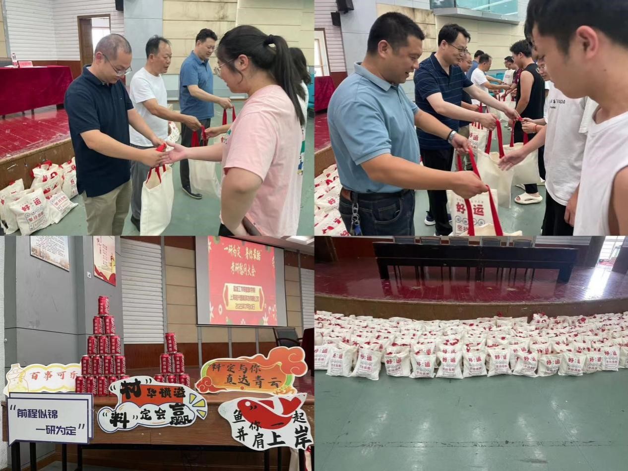 会议结束后,学院领导为考研学子发放暖心“考研加油包”:“风”生水起——手持电风扇、“牛”气十足——牛奶、心想事“橙”——果粒橙、“包”你上岸——手提包、一“记”绝尘——笔记本,红红火火——火龙果。每一份礼包都饱含美好的寓意,祝愿每一位考研学子取得优异成绩,升入理想学府。