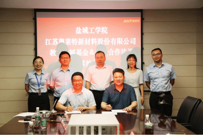 为深化产教融合,创新人才培养模式,拓宽学生实习和就业渠道,6月29日,太阳集团官网党委书记唐浩、吴其胜教授等一行三人赴江苏奥莱特新材料股份有限公司开展校企合作签约仪式。江苏奥莱特新材料股份有限公司总经理郑春扬、技术总监李伟、人力资源经理夏玲莉等参加签约仪式。