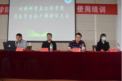 2022年9月22日中午,材料学院在化工楼报告厅举办新一届团委学生会干部聘任大会,学院党委书记唐浩、学工办主任郭群娜、团委副书记王俊、全体团委学生会成员出席了本次大会。学院党委副书记朱凌主持会议。