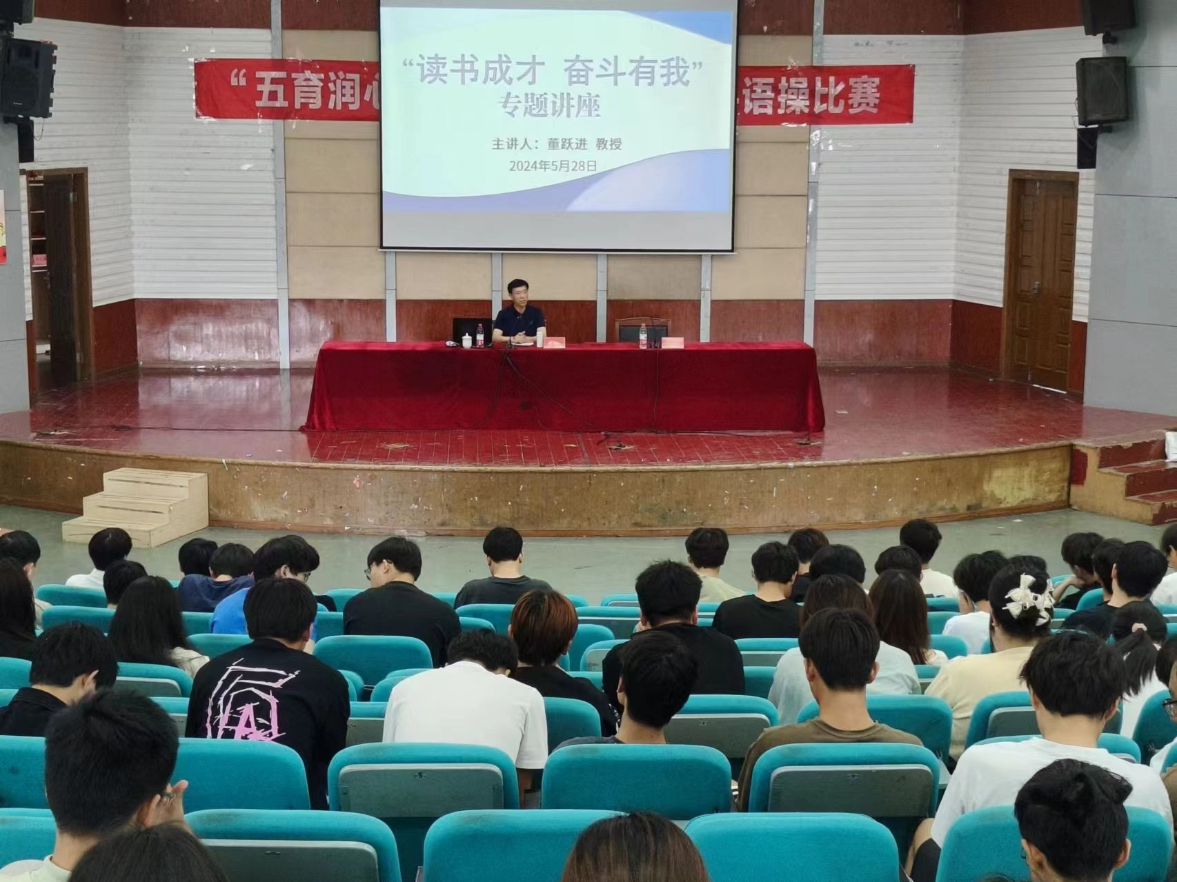 为贯彻落实立德树人根本任务,引导学生坚定理想信念,激励学生树立远大抱负,进一步落实推动关工委优质化建设工作,5月28日下午,太阳集团官网邀请“银龄理论宣讲团”专家董跃进教授,在五四报告厅开展“读书成长 奋斗有我”专题讲座。讲座由学院党委书记唐浩主持,2023级辅导员及全体学生参加。