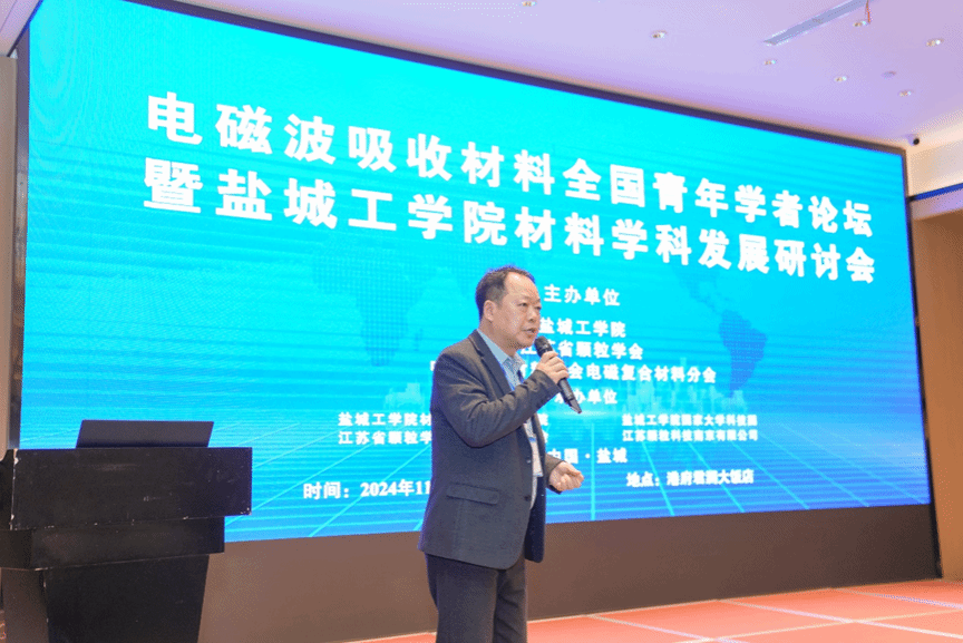 11月29日至12月2日,由我校和江苏省颗粒学会、中国复合材料学会电磁复合材料分会主办,太阳集团官网、江苏省颗粒学会青年工作委员会、盐城工学院国家大学科技园、苏颗粒科技南京有限公司承办的电磁波吸收材料全国青年学者论坛暨盐城工学院材料学科发展研讨会在盐城港府君澜大饭店举行。校党委常委、副校长王资生教授、江苏师范大学党委常委、副校长董晓臣教授、江苏省颗粒学会副秘书长李华冠、中国复合材料学会电磁复合材料分会主任委员孔杰教授、复旦大学车仁超教授、校党委常委、党委宣传部部长奚新国教授、太阳集团官网院长罗驹华教授出席。会议设立1个主会场,3个分会场,邀请了中科院物理所靳常青教授、复旦大学车仁超教授、陆军工程大学吕绪良教授、江苏师范大学董晓臣教授、南京理工大学曾海波教授作大会特邀报告,西北工业大学于志龙教授、郑州大学范冰冰教授、南京工业大学崔升教授、济南大学赵德刚教授等53位专家学者作学术研究及学科建设分会报告。来自全国各高校教师、科研院所专家、研究生等300余人参加。