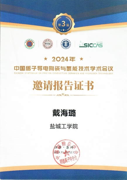 本次会议议题涵盖了质子导电陶瓷的基础理论、质子导电陶瓷电池和化学反应器的材料与界面、基于质子导电陶瓷的能量转化器件及其应用、氢能技术进展与发展趋势等多个方面。戴海璐副教授发表了题为《质子导体固体氧化物燃料电池La0.5-xScxSr0.5MnO3-δ阴极材料的研究》的邀请报告。报告中,戴海璐副教授分享了他们在质子导电陶瓷领域的研究成果,为燃料电池的阴极材料研究提供了新的思路,受到了与会专家学者的广泛关注和好评。